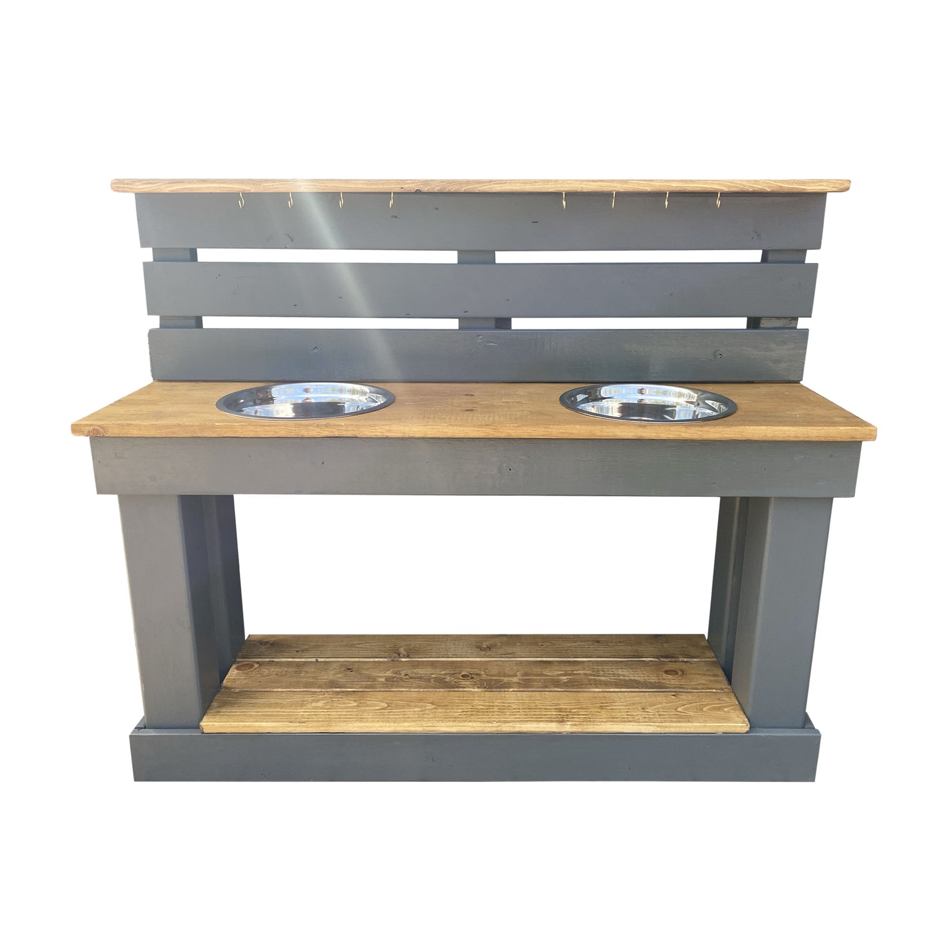 Remember making mud pies? Well, this is the perfect little kitchen to do just that! This weatherproof outdoor children's kitchen includes a backsplash, 2 stainless steel bowls, 4 hooks for kitchen accessories, and is sealed with an outdoor sealer.